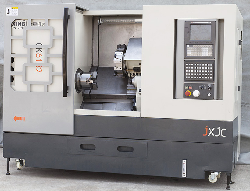 圖為金星機床生產(chǎn)的斜床身數(shù)控車床CK6132