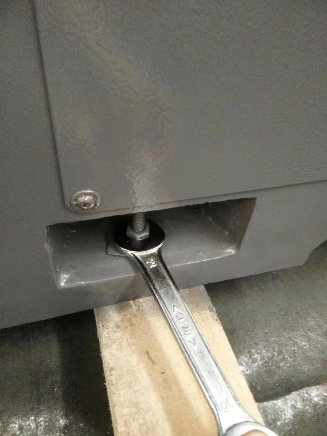 1、 數(shù)控機(jī)床的安裝:拆機(jī)床外包裝,拆掉固定機(jī)床的4個(gè)螺栓,使用3噸叉車鏟起機(jī)床,同時(shí)將調(diào)整墊鐵安裝到底座上。