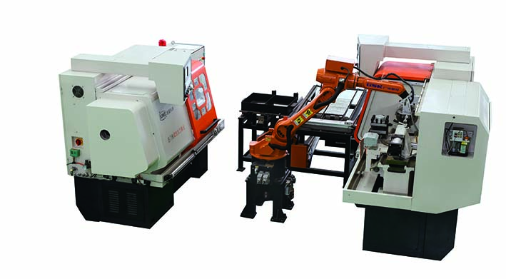 柔性加工單元(FMC)是數控機床配上工件托盤庫及托盤自動交換裝置的加工設備。一般是由數控機床和工業機器人各一臺組成,并由后臺計算機統一作可編程控制。